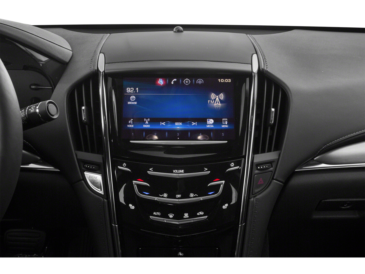 - Audio system, AM/FM stereo, dual USB ports SD card slot and auxiliary audio port with color information display 4.2" screen (Upgradeable to (IO5) Cadillac CUE Information and Media Control System when (Y24) Cadillac CUE and Surround Sound is ordered.)